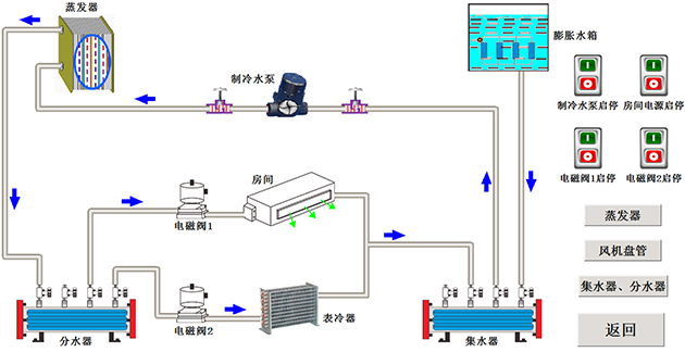 5、工作流程圖板3套:工作流程圖板詳細(xì)說明制冷系統(tǒng)流程、監(jiān)測點溫度、系統(tǒng)壓力、工作狀態(tài)指示、系統(tǒng)部件說明。