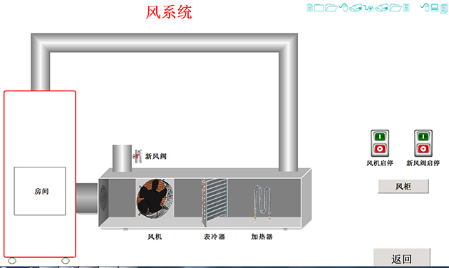 (3),系統(tǒng)故障運行演示:在配置有實物中央空調(diào)實訓(xùn)考核裝置時,在軟件演示故障時系統(tǒng)動畫與實物實時故障同步,讓學(xué)生更好地?fù)挝湛照{(diào)原理、操作方法,如壓縮機系統(tǒng)、制冷系統(tǒng)、制熱系統(tǒng)、風(fēng)系統(tǒng)、集中送風(fēng)系統(tǒng)、半集中送風(fēng)系統(tǒng)的原理過程。