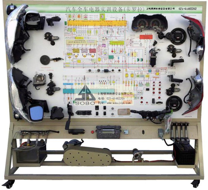 該設(shè)備采用全新卡羅拉整車電器實(shí)物為基礎(chǔ),充分展示汽車發(fā)動(dòng)機(jī)防盜系統(tǒng)、儀表系統(tǒng)、燈光系統(tǒng)、雨刮系統(tǒng)、喇叭系統(tǒng)、點(diǎn)火系統(tǒng)、電動(dòng)車窗系統(tǒng)、電動(dòng)門鎖、音響系統(tǒng)、起動(dòng)系統(tǒng)和充電系統(tǒng)等汽車電器各系統(tǒng)的組成結(jié)構(gòu)和工作過程。
