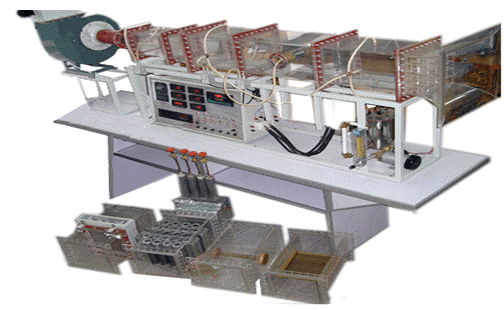 風(fēng)機,自動調(diào)節(jié)風(fēng)門,組合式有機玻璃風(fēng)洞,有機玻璃實驗管段,有機玻璃叉排、順排實驗段,旋轉(zhuǎn)圓柱試件,紫銅平板試件,穩(wěn)壓電源配電位器調(diào)節(jié)加熱功率,電流表,電壓表,畢托管及差壓傳感器,PT100熱電阻測溫,巡檢儀顯示溫度、阻力、流量,不銹鋼臺架等。