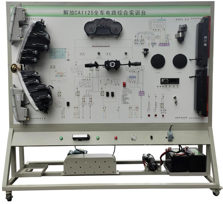 解放CA1125全車電路綜合實訓(xùn)設(shè)備采用解放CA1125J柴油機整車電器實物為基礎(chǔ),充分展示汽車儀表系統(tǒng)、燈光系統(tǒng)、雨刮系統(tǒng)、喇叭系統(tǒng)、發(fā)動機電器系統(tǒng)、起動系統(tǒng)和充電系統(tǒng)等汽車電器各系統(tǒng)的組成結(jié)構(gòu)和工作過程。