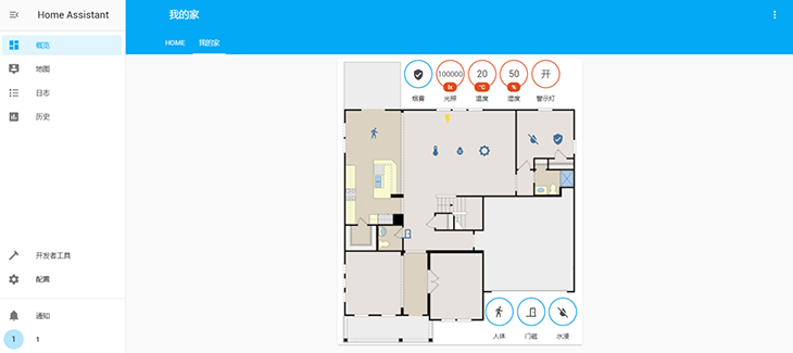AIoT平臺向用戶推薦提供Home Assistant開源系統(tǒng)進(jìn)行智能家居案例實現(xiàn)。Home Assistant作為一個基于Python3的自動化智能家居平臺,支持眾多品牌的智能家居設(shè)備部署,方便手動或按照自己的需求自動化聯(lián)動各種外部設(shè)備,可通過Node-RED管理設(shè)備的自動化規(guī)則,直觀展現(xiàn)傳感器設(shè)備在不同環(huán)境下實現(xiàn)的功能。用戶還可自主繪制并導(dǎo)入智能家居場景平面圖,設(shè)置相關(guān)傳感器設(shè)備的位置,提高用戶體驗感。