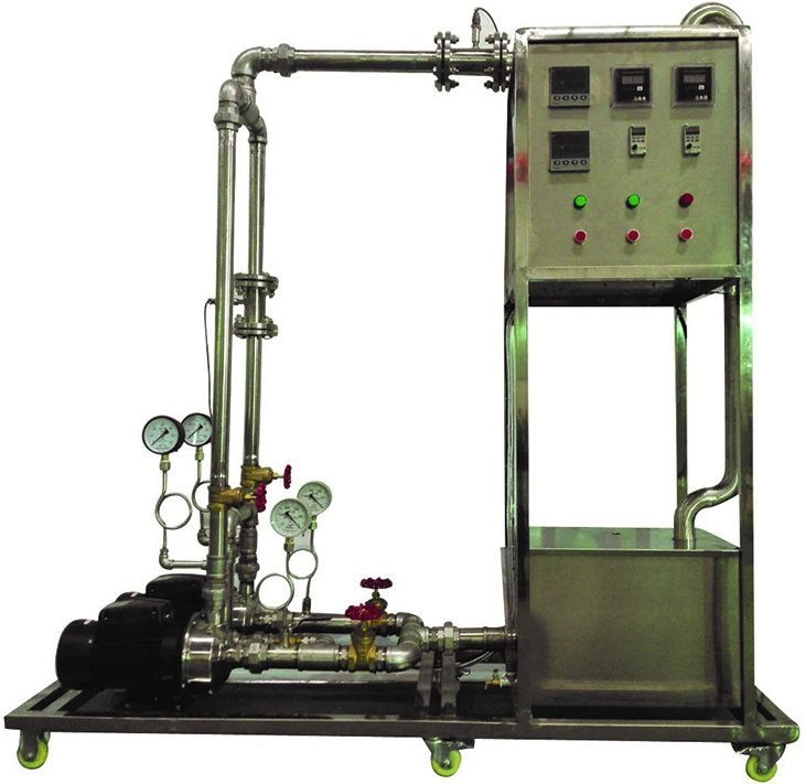 單相矢量變頻器,規(guī)格:(0-50)Hz。 指針式壓力表:表盤直徑Φ100mm 測(cè)量范圍0-0.6MPa,精度1.5級(jí)。 指針式真空表:表盤直徑Φ100mm 測(cè)量范圍-0.1-0MPa,精度1.5級(jí)。 功率變送器、智能功率數(shù)字顯示儀。 光電傳感器:數(shù)顯,測(cè)量范圍0~2999rpm,精度1rpm,轉(zhuǎn)速檢測(cè)機(jī)構(gòu)。 宇電AI702M溫度數(shù)字顯示儀。 宇電AI702M流量數(shù)字顯示儀。 DN40渦輪流量計(jì):1~20m3/h,4-20mA遠(yuǎn)傳輸出,流量檢測(cè)機(jī)構(gòu)。 不銹鋼離心泵:功率750W,最大流量7.2m3/h;2臺(tái)。 水箱:304不銹鋼材質(zhì),容積100L,帶貯水排空底閥,管路循環(huán)回水與泵吸入口間隔板設(shè)計(jì)。 管路:304衛(wèi)生級(jí)不銹鋼材質(zhì),采用不銹鋼快裝活接與管路連接,總出口閘閥;管道法蘭連接渦輪流量計(jì)。 電器:接觸器、開關(guān)、漏電保護(hù)空氣開關(guān)。 304不銹鋼儀表柜:測(cè)控、電器設(shè)備在實(shí)驗(yàn)架上。 304不銹鋼材質(zhì)框架1800*600*1900mm(長×寬×高),帶腳輪及禁錮腳。 |