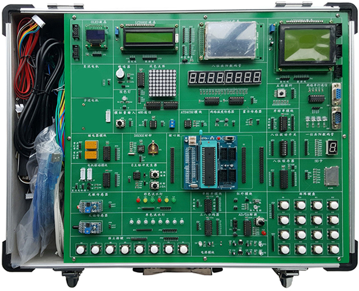 單片機(jī)實(shí)訓(xùn)箱適用于研究生、本科、大專、職業(yè)技術(shù)學(xué)院及其中等專業(yè)技術(shù)學(xué)校的信息通信技術(shù)、應(yīng)用電子技術(shù)、機(jī)電一體化、微機(jī)應(yīng)用、數(shù)控技術(shù)、自動(dòng)化、計(jì)算機(jī)原理與應(yīng)用、儀表及控制、汽車工程等電子應(yīng)用和微機(jī)控制的相關(guān)專業(yè)。是《MCS-51 單片機(jī)原理與接口》《C8051 嵌入式單片機(jī)控制技術(shù)》《自動(dòng)化控制》《CPLD/FPGA 技術(shù)》等課程教學(xué)的最佳配套實(shí)驗(yàn)設(shè)備。