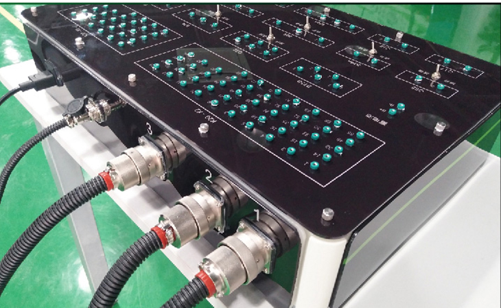 4、機械故障設(shè)置終端通過更換面板上不同功能的插件和短路跨接線實現(xiàn)斷路、線路虛接、對地短路、對正極短路故障設(shè)置,在機械故障設(shè)置終端不變的情況下更換不同的連接線束和檢測面板可實現(xiàn)不同系統(tǒng)的實訓(xùn)操作;