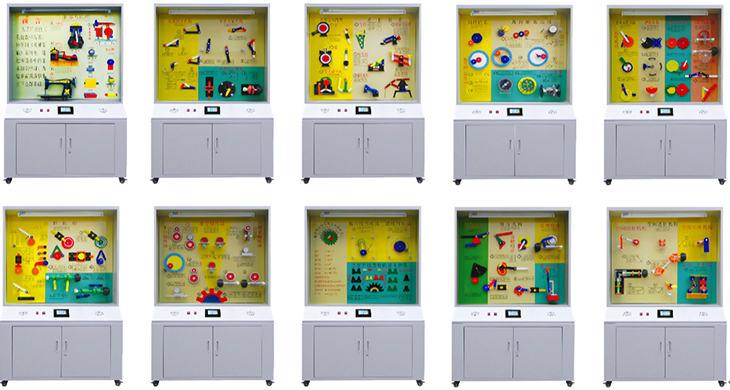 機(jī)械元件陳列柜是根據(jù)大、中專院校、技校、職業(yè)學(xué)校的機(jī)械原理教學(xué)大綱設(shè)計(jì)的電化教學(xué)設(shè)備。本陳列柜具有多功能語音播放控制系統(tǒng),語音解說同步演示,采用單獨(dú)驅(qū)動(dòng)由電腦或電子設(shè)備控制運(yùn)轉(zhuǎn)演示,可由遙控控制順序自動(dòng)運(yùn)行講解,又能根據(jù)教材、教學(xué)需要而遙控任意選擇還是單獨(dú)演示。模型材料采用進(jìn)口有機(jī)板制造,板面附有必要的圖表和文字說明,演示形象逼真,運(yùn)行可靠,制作工藝美觀,使用本陳列柜可提高教學(xué)效果,節(jié)約學(xué)時(shí)是一套現(xiàn)代化機(jī)械課程教學(xué)應(yīng)用實(shí)驗(yàn)室設(shè)備。