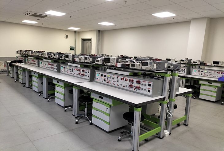 電子技術基礎實驗室設備主要承擔院校本科生的電子技術類課程和課程設計的實驗教學任務。電子技術基礎實驗室設備具備模擬電子技術實驗室和數字電子技術實驗室的雙重功能。電子電工技術基礎實驗室設備面向電類專業(yè)開設《模擬電子技術》、《數字電子技術》、《電子技術課程設計》等課程實驗以及院校非電專業(yè)的電子技術實驗實訓。電子實驗實訓室主要配備電子技術實驗臺、電工電子技術實訓平臺、電子創(chuàng)新實驗實訓平臺、電子焊接實訓平臺、電子工藝實訓平臺、電子生產線實訓平臺、毫伏表、示波器等實驗設備。電子電工實驗實訓室以培養(yǎng)學生的動手能力為主要目標,使學生掌握電子技術實驗的測量方法和基本技能,強化學生分析問題和解決問題的實際工作能力,提高學生的工程意識。