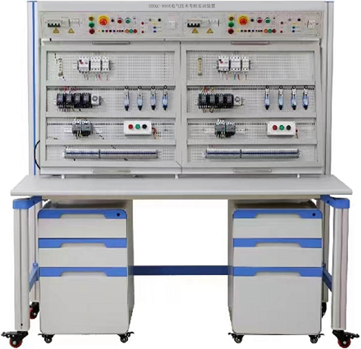 電氣安裝與維修實訓考核裝置是根據工廠電氣安裝和室內電氣安裝等維修 電工和電氣安裝工實訓鑒定要求開發(fā)的一種通用實訓平臺。 適合于各類職業(yè)院校 和技工學校維修電工、 電氣安裝工、水電工等有電氣實訓要求的相關專業(yè)的作為 公共實訓平臺使用。 采用鋼制網孔板和鋼制專用型材組接而成,安裝有自鎖式腳輪,方便移動和使用。裝 置表面噴塑,色彩穩(wěn)重氣派。電氣安裝與維修實訓裝置設計高度以人站在一級人字梯即可方便操作的高度,既安 全又能使使用者感受到施工現場環(huán)境。 橫向、 叢向寬度合適, 可以模擬現場線路的轉向布置。